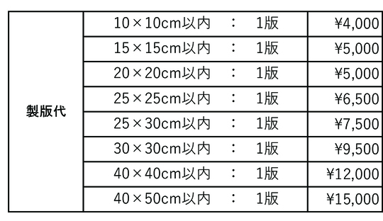 | 左胸or左袖 | ¥2,300 | ¥450 | ¥400 | ¥350 | ¥300 | ¥250 | お見積 |