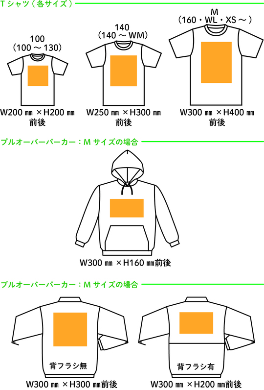 全胸・背面プリント範囲